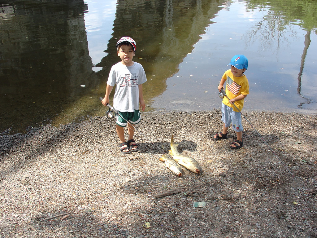 The other nice thing about this spot is that the carp tend to be a bit smaller. Which is good if you brought a younger angler who gets mad if you hook your finger in his belt loop while he is fighting a carp. If you don't hold on to his older brother, he is not going to be happy if you hold onto him. Why would you stick your finger through their belt loop? Well there were few times that a bigger carp had a decent chance of pulling my son into the river. And even though their mother sent us off to go fishing because the boys were working on her last nerve, she probably would have been upset if I returned without the entire complement of kids.