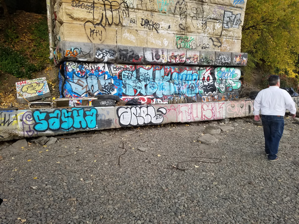 It is hard to tell in the normal pic, but the graffiti is still there. One of the side effects of