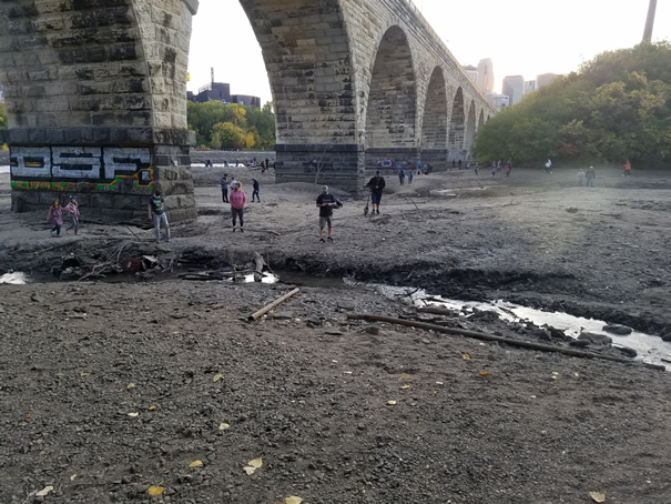 I read about it on some web site (MinnPost?) and saw a few pics and was fascinated. Luckily I was slated to go down and pick up my youngest son (yes the cute little guy from the previous page) at THE U of M. His dorm is just a couple miles from the SAB, so I left early and spent a couple hours wandering around the river bed. It was just as cool as I had hoped it would be.